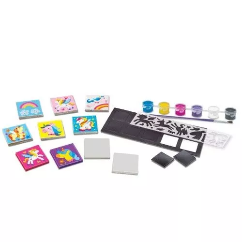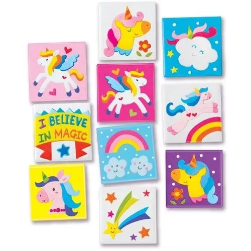 Verander kleine tegeltjes in een kleine meesterwerkjes met dit knutselpakket ‘Unicorn Mini Tile Art’ van het merk 4M, voor een vleugje magie in de kamer of op de koelkast.