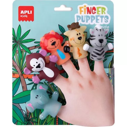 Kleine verhalen vol grootse avonturen met vijf ‘Vingerpoppetjes – Jungle’ van het Spaanse merk Apli. Een leeuw, giraffe, zebra, aap en een olifantje om de leukste verhalen mee te verzinnen.