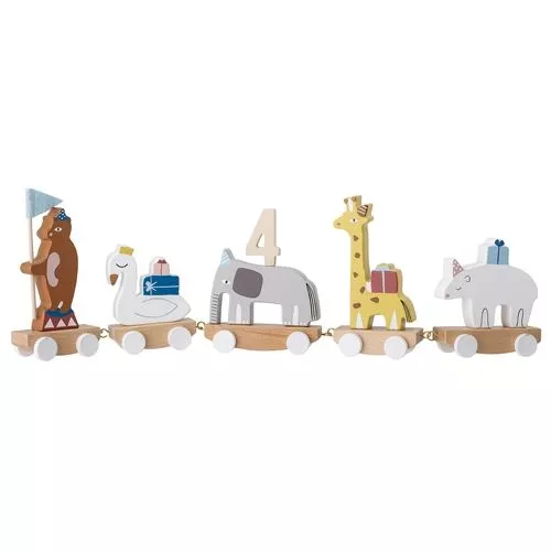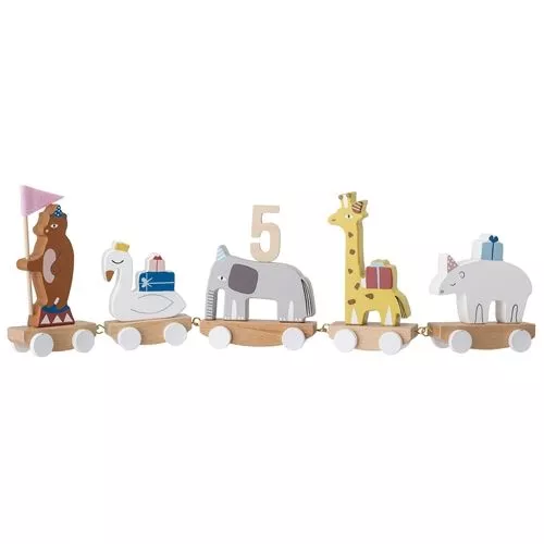 Een prachtige klassieke versiering voor een heerlijke ‘feelgood’ stemming aan de feesttafel met deze ‘Birthday Decoration’ van het Deense merk Bloomingville. Voorop de beer met achter zich vier tot de verbeelding sprekende figuren: een zwaan, olifant, giraf en ijsbeer. De olifant draagt het verwisselbare cijfer terwijl de andere dieren cadeautjes dragen.