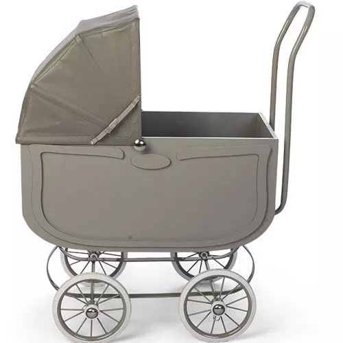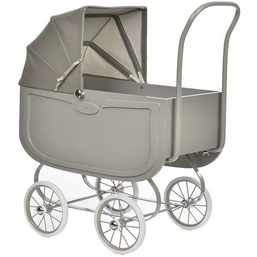 Een sierlijke, vintage poppenwagen in het grijs van het Deense merk By Astrup, waarmee een poppenmoeder parmantig op stap kan. De diepe, houten poppenwagen heeft plek voor een grote babypop of zelfs een aantal favoriete kinderknuffels. Wie er ook mee op stap gaat, de nostalgische poppenwagen vervoert ieder kindervriendje warm en geborgen door alle hoeken van het huis.