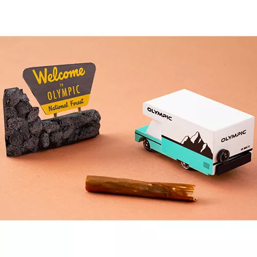 Deze speelgoedcamper ‘Olympic RV’ van het Amerikaanse merk Candylab is favoriet voor een roadtrip. De houten wagen met bergen op de zijkant doet door een simpel maar uiterst sterk ontwerp meteen denken aan een klassieke camper. Designerspeelgoed voor de echte autoliefhebber.