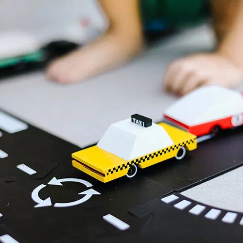 Tuut tuut, instappen! Deze speelgoedtaxi ‘Candycar – Taxi’ van het Amerikaanse merk Candylab is de ster van iedere autobaan. De houten auto doet door een simpel maar uiterst sterk ontwerp meteen denken aan de klassieke taxi’s in Amerika. Designerspeelgoed voor de echte autoliefhebber.