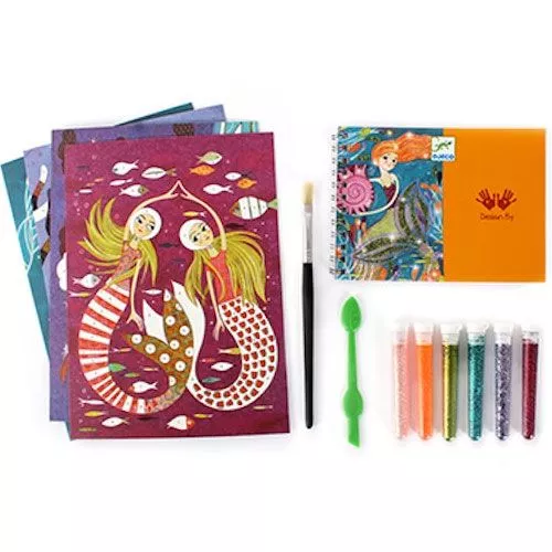 Maak schitterende glitterschilderijtjes met deze vrolijke knutselset van het merk Djeco. Een inspirerend creatief werkje voor de echte zeemeerminliefhebber.