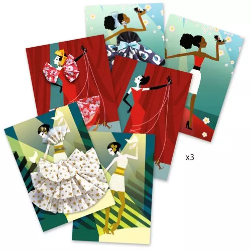 Deze Parisiennes staan er gekleurd op in hun ondergoed op de versierkaarten en willen graag gekleed worden in uitbundige jurken. ‘So Paris’ uit de serie Cartes à Froufrous van het Franse merk Djeco is een creatieve naaiset, waarmee meisjes op een originele manier kennis maken naaien.Â