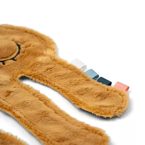 Knuffeldoek ‘Cozy Friend – Jelly, Mustard’ van het Deense merk Done by Deer is meer dan een zijdezacht doekje om te vertroetelen. Met een bijtspeeltje, houder voor een speen, verschillende texturen en kleuren heeft dit babyspeelgoed alles in zich om een onmisbaar vriendje te worden.