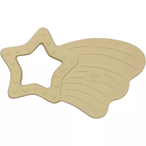 Een bijt- en grijpspeeltje ‘Natural Rubber Teether – Shooting star – Pale Yellow’ van het Deense merk Fabelab met ribbeltjes. Een waar plezier voor kleine baby’s om op te bijten en aan te frummelen.