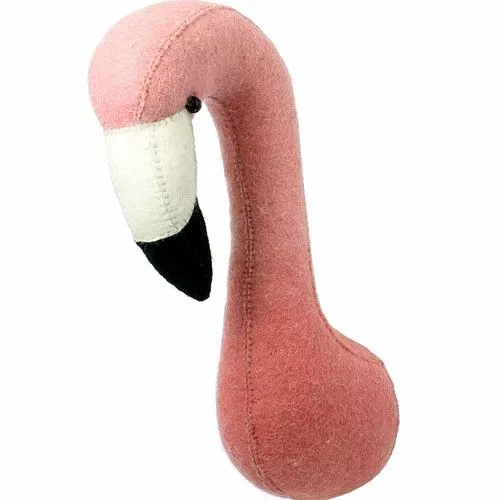 Een elegante flamingokop, ontworpen door de Engelse Fiona Walker. Deze zachtroze flamingo met karakteristieke snavel heeft een mooie kromming in zijn hals en is daarmee een geweldige eye-catcher in de kinderkamer, speelkamer of woonkamer.