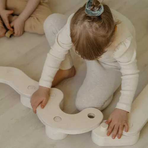 Alle POLKU speelsets van Fitwood kunnen met elkaar gecombineerd worden om een groter evenwichtsparcours te leggen.