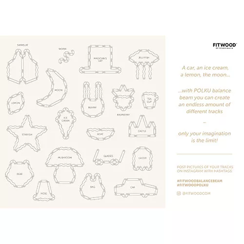 Leg een balanstrainingsbaan en leer evenwicht te bewaren met de speelset ‘POLKU – maat L’ van het Finse merk Fitwood. De set L is ideaal speelgoed voor kinderen, die het heerlijk vinden hun gevoel voor balans te ontwikkelen en die de uitdaging aan willen gaan voor het bouwen van een groot evenwichtsparcours.