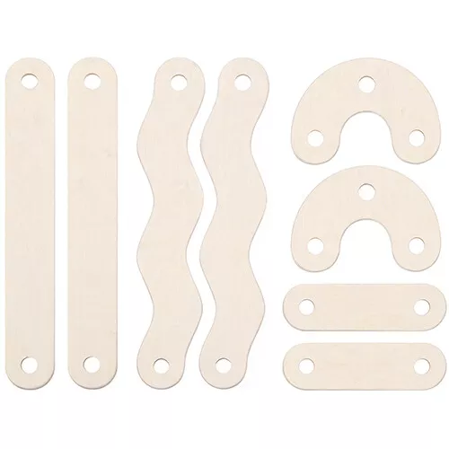 De set bestaat uit acht evenwichtsbalken en 10 koppelingen om de onderdelen aan elkaar te verbinden.Â