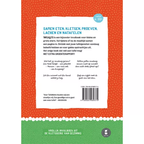 Het invulboek ‘Tafelklets’ van het Nederlandse merk Gezinnig staat vol vragen en opdrachten om aandacht te geven aan elkaar en de maaltijd. De speelse inhoud van het kletsboek zorgt voor vrolijkheid en verrassende gesprekjes.