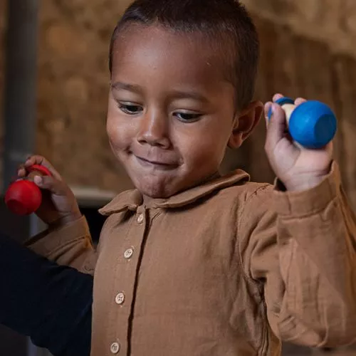 Het houten speelgoed is met de hand geschilderd. Dat kan soms afwijkingen geven in tinten. En dat is precies wat Grapat voor ogen heeft: natuurlijk materiaal dat per stuk zowel in nerf en als kleurintensiteit kan verschillen.