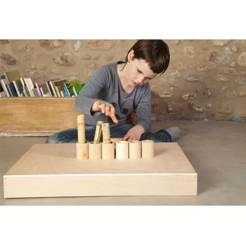 Een set van 6 houten ronde potjes met dekseltjes ‘Cubilets cru amb tap’ van het Spaanse merk Grapat, geschikt voor allerlei speelmogelijkheden en leermomenten. Voor de allerkleinsten boeiend speelgoed! Past alles erin wat de dreumes erin wil hebben? Een stimulans voor begrippen als groot en klein, veel en weinig. De potjes kunnen gestapeld worden en er kunnen schatten in bewaard worden.