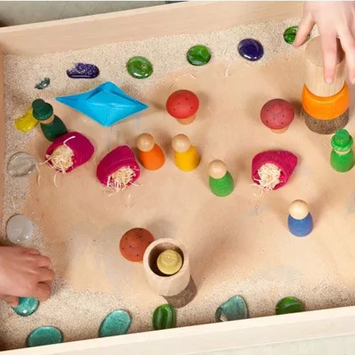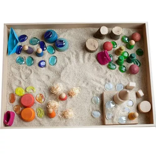 De speelbak met de hoge rand zorgt ervoor dat de inhoud mooi bijeen blijft en biedt een kader van het spel. Het speelveld kan makkelijk opgeborgen worden voor een volgend speelmoment of tentoongesteld worden. Zo kan de bak prima gebruikt worden om een thema of seizoen tentoon te stellen.