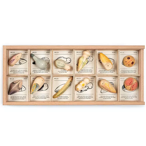 Een set van 12 prachtige figuren uit de serie ‘Wild’ van het Spaanse merk Grapat, geïnspireerd op het dierenrijk. Abstract vormgegeven speelgoed dat de fantasie prikkelt en uitnodigd tot onderzoek.