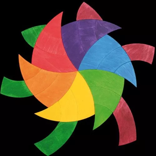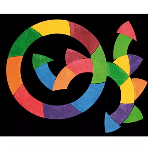 De ‘Colour Circle Goethe’ magneetpuzzel van het Duitse merk Grimm’s biedt héél veel speelmogelijkheden. De gekleurde schijfjes hebben verschillende vormen, waardoor er allerlei patronen mee gevormd kunnen worden. Puzzel de voorbeelden op het blad na of verzin zelf mooie patronen. Het is verrassend welke krachtige vormen tevoorschijn getoverd worden.