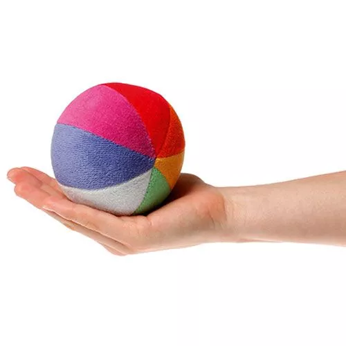 Door de heldere kleuren, de zachte stof en het prettige belletje binnenin de bal, worden de zintuigen en grijpreflexen van de baby gestimuleerd. Later kan de bal gebruikt worden om kleuren te leren en om de fijne motoriek te ontwikkelen.