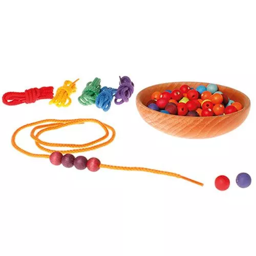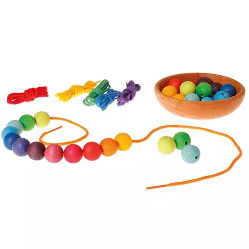 Zes kleurrijke rijgtouwtjes voor het rijgen van de mooiste kettingen van het Duitse merk Grimm’s. De regenboog rijgdraden hebben een lengte van 80 cm en zijn geschikt voor alle rijgkralen van Grimm’s.