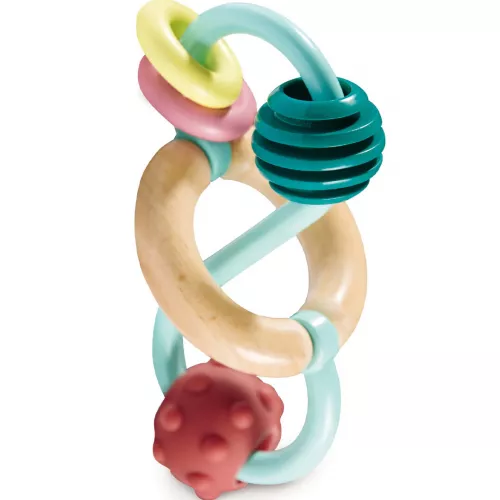 Het babyspeelgoed helpt de pijn bij doorkomende tandjes te verlichten. De rammelaar maakt een subtiel rammelend geluid en de zachte kleurtjes maken de rammelaar extra aantrekkelijk.