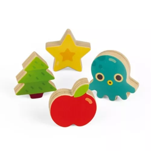 Een vleugje memorie en een vleugje geluk, dat is dit vormenspel ‘Memory Touch Recognition Game’ van het Franse merk Janod.