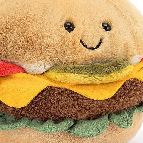 Deze gezellige knuffel ‘Amuseable Burger’ van het Engelse merk Jellycat is om in te happen!