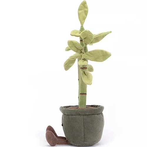 Met linnen stelen en zachte suède bladeren is ‘Amuseable Potted Bamboo’ van het Engelse merk Jellycat een grappig knuffelplantje uit de Amuseables serie.