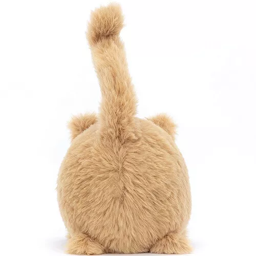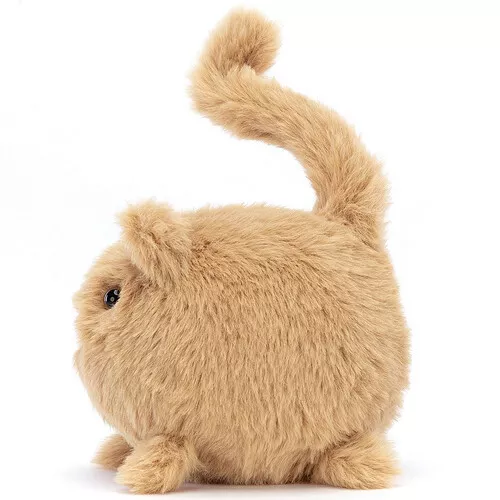 Deze piepkleine, speelse knuffelpoes ‘Kitten Caboodle Ginger’ uit de Pocket Pals serie van het Engelse merk Jellycat groet met een vrolijk opgeheven staart. De aanhankelijke kitten van zacht pluche heeft een nieuwsgierig snuitje, die met haar bruine kraalogen om knuffels vraagt. Een ienimini knuffelploesje voor de allerkleinsten.