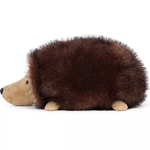 Met zijn glinsterende kraaloogjes en pluizige stekelvacht vraagt deze grote knuffelegel ‘Hamish Hedgehog’ van het Engelse merk Jellycat om veel knuffels. Zijn vacht is heerlijk om doorheen te woelen en met zijn vrolijke glimlach en kleine oortjes is hij onweerstaanbaar gezelschap. De egel heeft een fluweelzacht buikje.