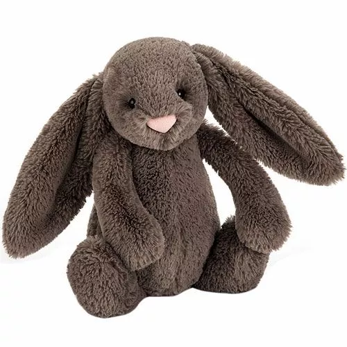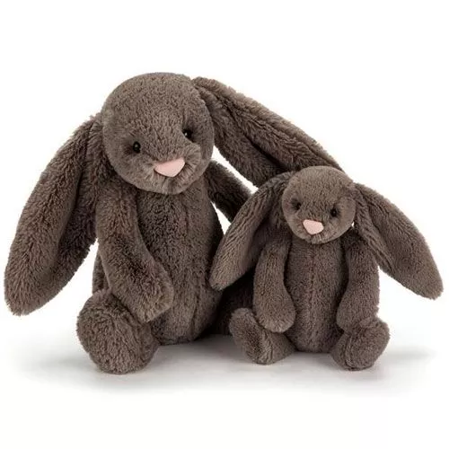Bashful Bunny Truffle van het Engelse merk Jellycat is een klein lief speelgoedkonijn met kraaloogjes, een luxe fluweelzachte donkergrijze vacht en een klein roze neusje. Een knuffel om te knuffelen en om altijd bij de hand te hebben. Zijn lange slappe flaporen en slappe armen zijn gemakkelijk vast te houden.