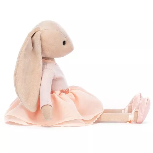Dit dansende knuffelkonijntje staat al klaar om te stralen als prima ballerina. ‘Lila Ballerina’ van het Engelse merk Jellycat heeft haar balletpakje en spitzen al aangetrokken.