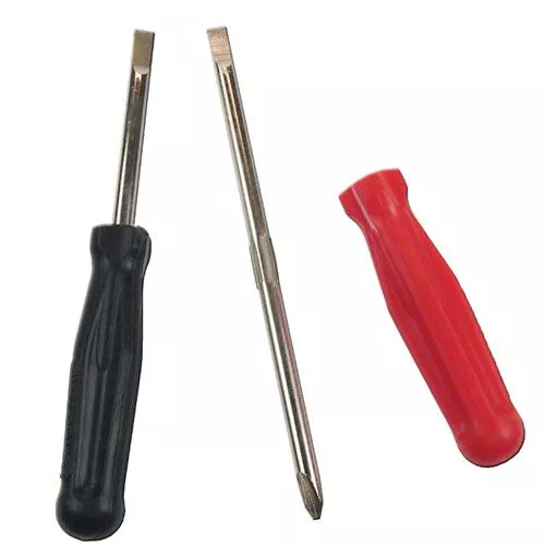 De staaf in het handvat van kunststof kan makkelijk uit de gleuf geschoven worden en is aan de ene kant een kruiskop schroevendraaier en ander de andere kant een normale.
