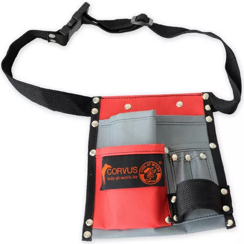 Met deze stoere gereedschapsgordel uit de serie Kids-at-Work van het Duitse speelgoedmerk Corvus kan een kleine klusser zelf zijn gereedschap samenstellen om mee te nemen bij zijn klussen.