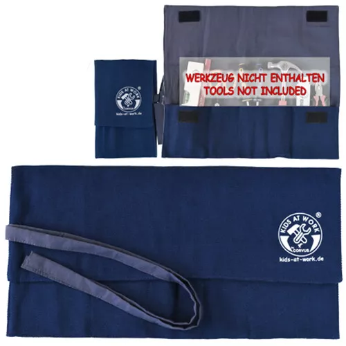 Met deze oprolbare gereedschapstas ‘Tool Roll’ uit de serie Kids-at-Work van het Duitse speelgoedmerk Corvus kan een kleine klusser zelf zijn gereedschap samenstellen om mee te nemen naar zijn of haar klussen.