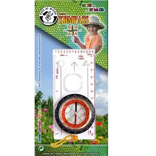 “Loop ik naar het oosten of naar het zuiden?” Dit kompas uit de serie Kids-at-Work van het Duitse speelgoedmerk Corvus helpt je je te oriënteren in de grote stad of tijdens een wandeling in de natuur.