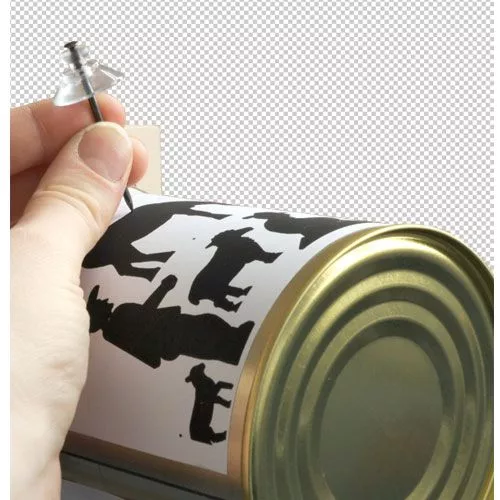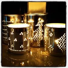Als de sjablonen kunnen om het blik gelegd zijn, kan vervolgens met de spijkers de gaatjes erin geprikt worden.