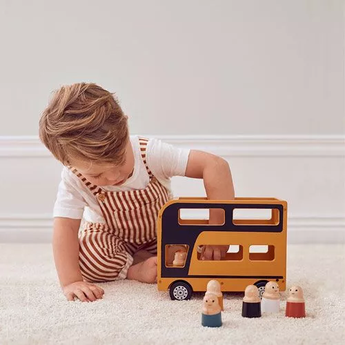 De chauffeur van deze dubbeldekker van het Zweedse merk Kids Concept neemt zeven passagiers mee op reis. Het tussenvlak van de bus kan worden verwijderd om uit de passagiers uit de bus te verwijderen.