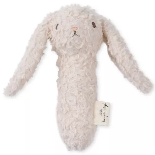 Een stoffen knuffelrammelaar met een zachte textuur. De ‘Petit Hand Rattle Terry Animals -Bunny’ van het Deense merk Konges Sløjd is gemakkelijk vast te houden voor baby’s. De handrammelaar maakt een geluidje bij het schudden.
