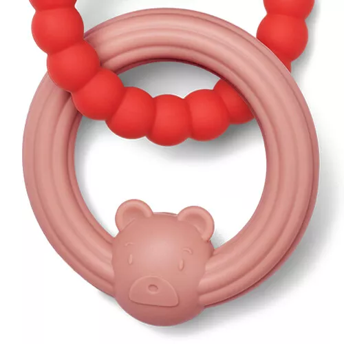 De verschillende rondingen en het berensnoetje masseren het tandvlees, wat de pijn van doorkomende tandjes verzacht.