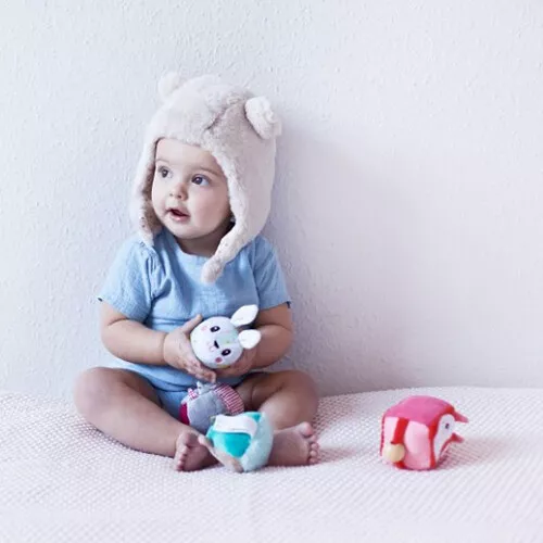 Vier zachte grijpspeeltjes in diverse vormen, kleuren en materialen van het Belgische merk Lilliputiens. Met o.a. Alice het vosje en César de beer. Veelzijdig babyspeelgoed om kleintjes te verwennen met ontdekkingen en verrassingen en dat spelenderwijs de zintuigen stimuleert.