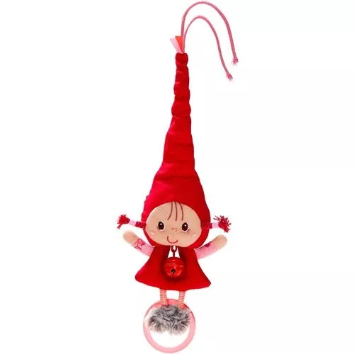 Een vrolijk activiteitenspeeltje en rammelaar met belletje ‘Roodkapje’ van het Belgische merk Lilliputiens. Bindt het speelgoedpopje vast aan de wieg, box, kinderwagen of maxi cosi, rek haar uit en ze veert al rinkelend terug.