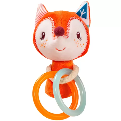 Deze kleine knuffel Alice het vosje van het Belgische merk Lilliputiens, bevat knisperend materiaal en twee bijtringen heeft die de pijn van doorkomende tandjes verzachten.