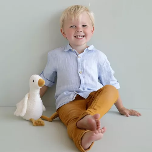 Deze kleine, vertederende knuffelgans ‘Little Goose’ van het Nederlandse merk Little Dutch voor de allerkleinsten, steekt met kop en schouders boven alle vogels uit. De ganzenknuffel van zacht pluche, heeft geborduurde oogjes en lange poten en vleugels om hem aan vast te pakken.