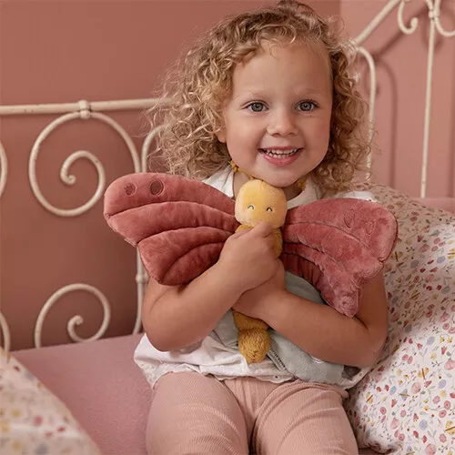 Deze knuffelvlinder uit de ‘Flowers & Butterflies’ collectie van het Nederlandse merk Little Dutch slaat graag haar vleugels uit.