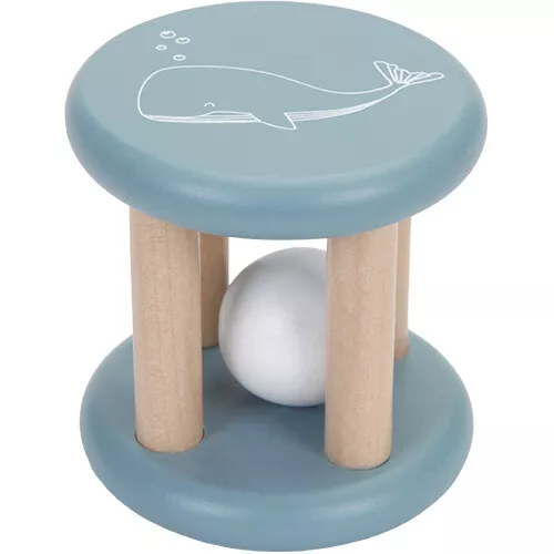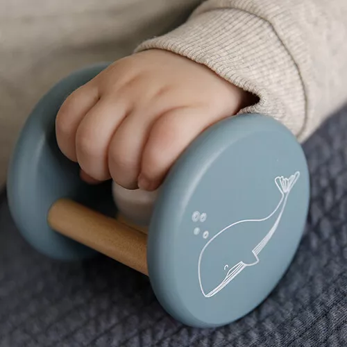 Deze rollende rammelaar ‘Ocean’ van het Nederlandse merk Little Dutch weet baby’s aan het lachen te krijgen. Aan de zijkant van het babyspeelgoed prijkt een vrolijke walvis.