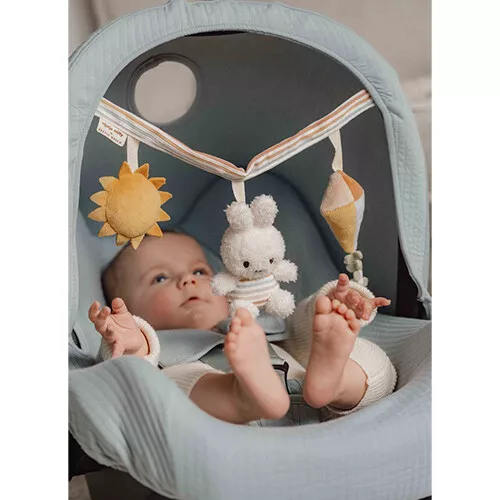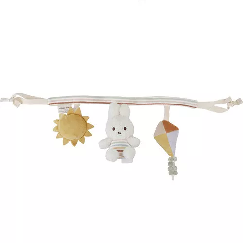 Deze vrolijke wagenspanner ‘Nijntje Vintage Sunny Stripes Wagenspanner’ van het Nederlandse merk Little Dutch, in samenwerking met Nijntje-Miffy, is prachtig babyspeelgoed om naar te kijken en om mee te spelen.