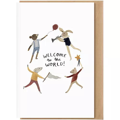 Verwelkom de kleine baby met deze geboortekaart met de tekst ‘Welcome to the world’ van het Franse merk Main Sauvage.