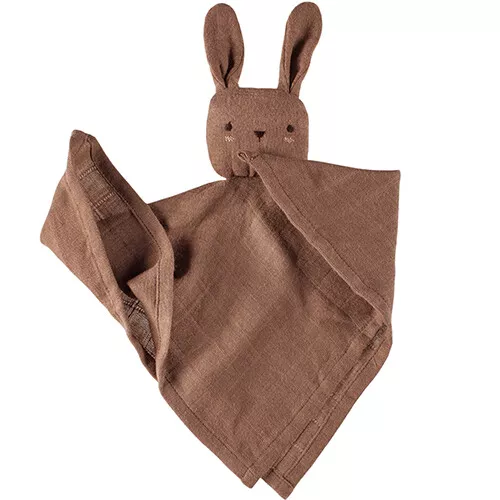 Een knuffeldoek ‘Cuddle Cloth, Bunny Nut’ van het Franse merk Main Sauvage om mee te tutten en te frutten. Het vriendelijke konijnenkopje met lange flaporen voelt prettig en vertrouwd. Een heerlijk eerste knuffeltje voor kleine dromers.