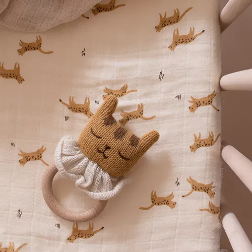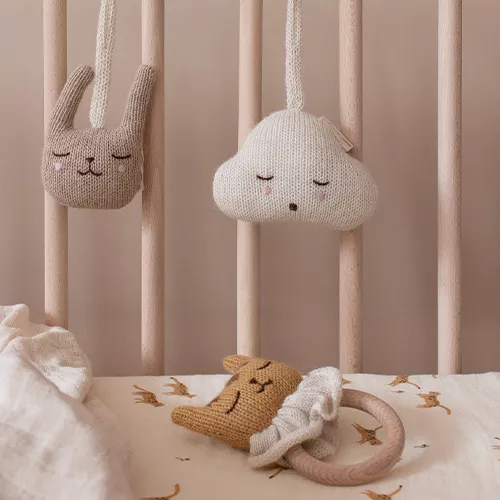 Het babyspeelgoed voelt zacht aan en is dankzij de houten ring gemakkelijk vast te pakken. Een dromerig knuffeltijgertje met wit kraagje en een zacht belletje voor in de box of in de wieg. De alpacawol is een hypoallergene en een antibacteriële materiaalsoort.