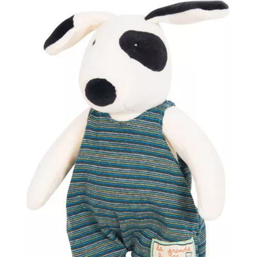 Dit zachte knuffelhondje ‘Julius’ uit de collectie ‘La Grande Famille’ van het Franse merk Moulin Roty wordt graag geknuffeld.
