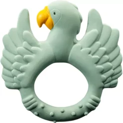 Deze vrolijke papegaai op deze bijtring ‘Teether Parrot – Light Green’ van het Deense merk Natruba masseert het tandvlees en verlicht de pijn bij het doorkomen van de tandjes. Het babyspeelgoed is eenvoudig vast te pakken door kleine handjes en heeft verschillende diktes en veel reliëf.